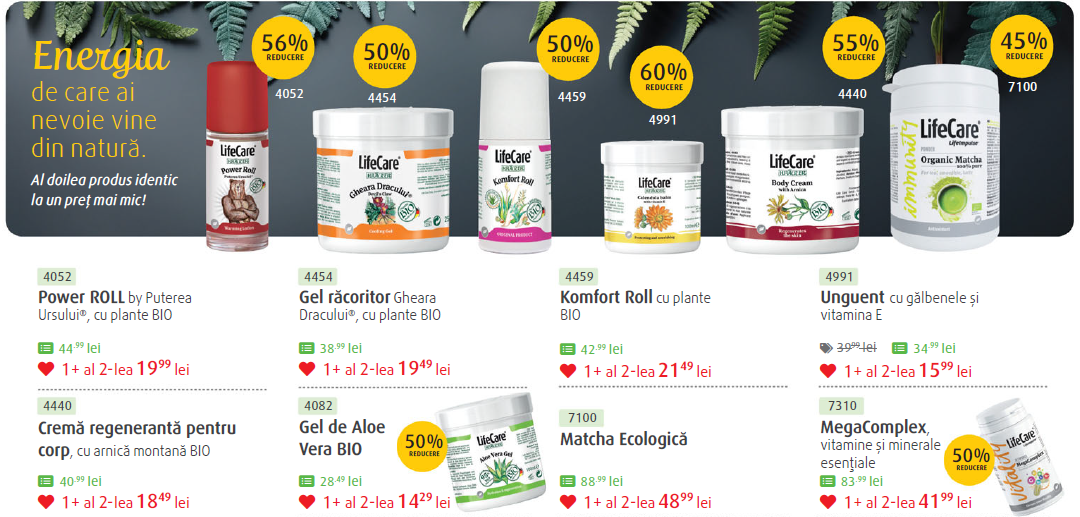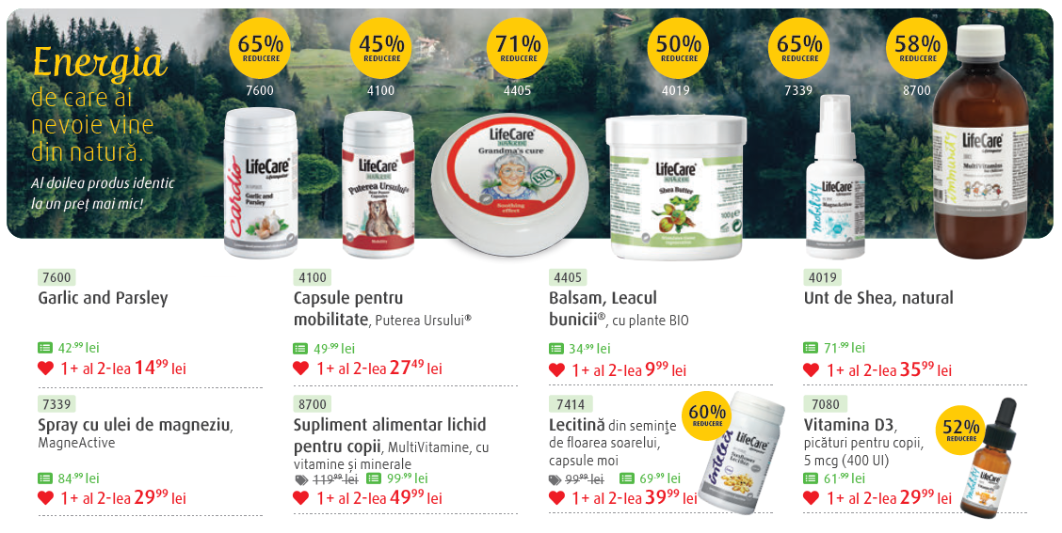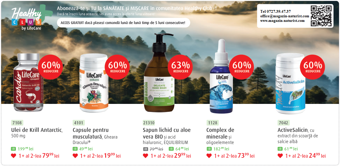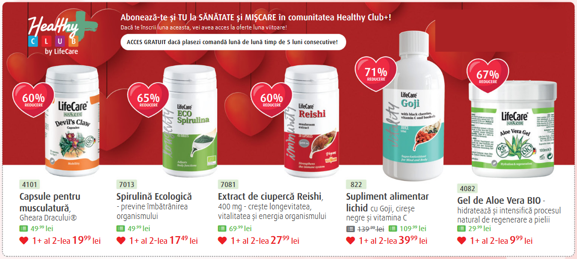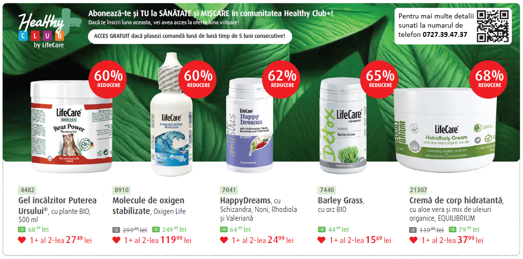 Promotiile pentru cele 5 produse de mai jos, se pot accesa doar daca ați făcut comanda luna de lună în ultimele 5 luni sau dăcă sunteți înscriși în programul HealtyClub.
