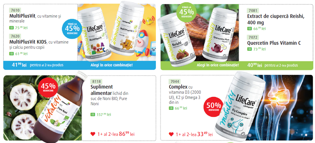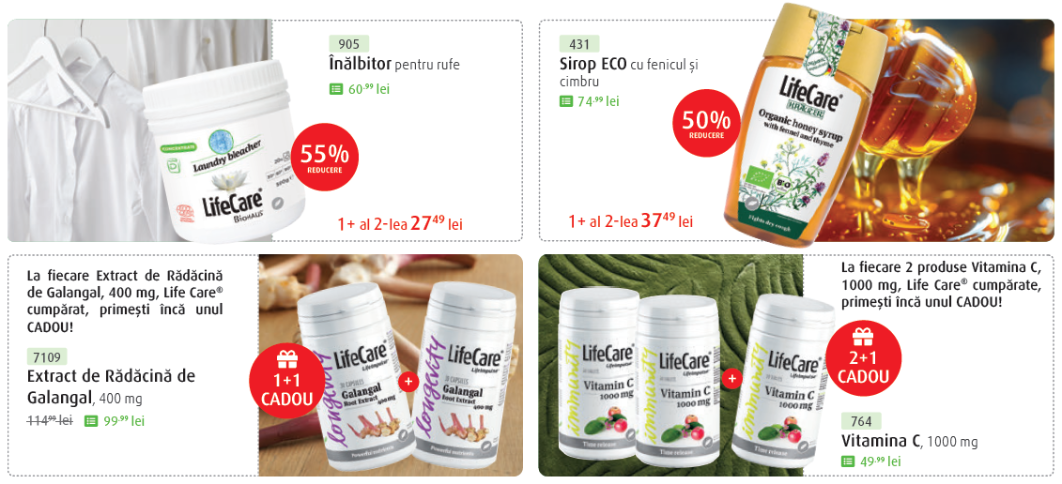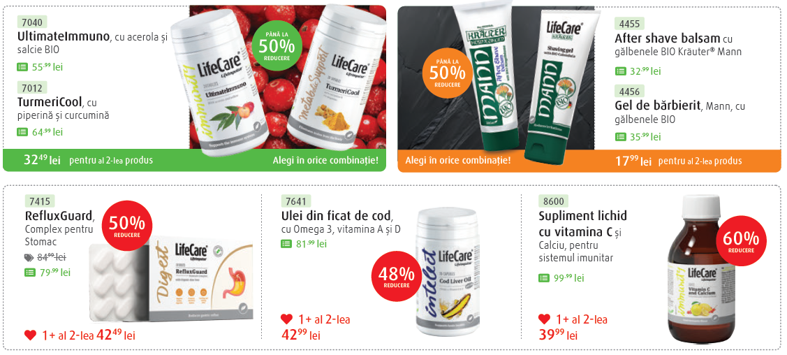 Aceste promotii sunt valabile exclusiv pentru partenerii Life Care. Pentru a beneficia de acestea va rugam sa completati formularul de inscriere. In plus dupa completarea formularului de inscriere beneficiati pe viata de 20% REDUCERE pentru toate comenzile facute la firma noastra.