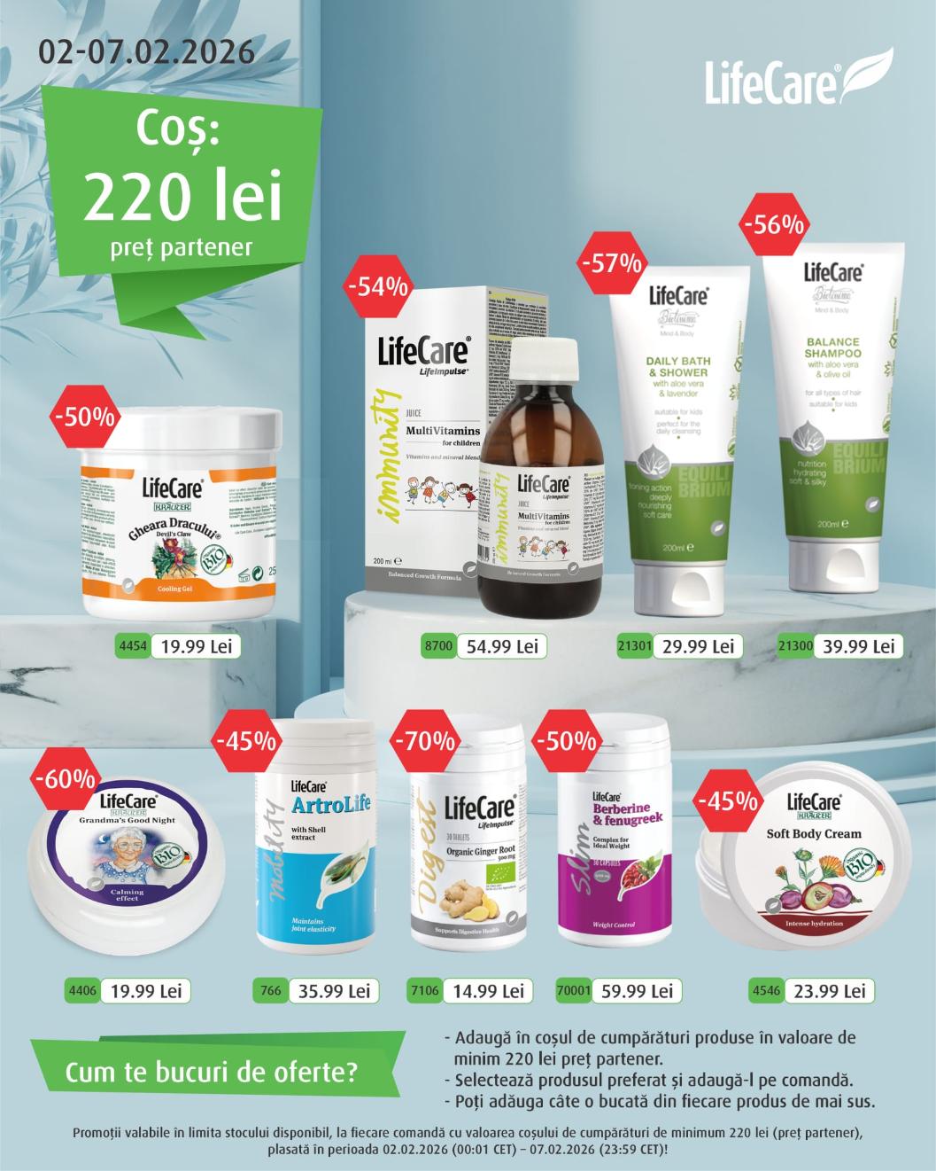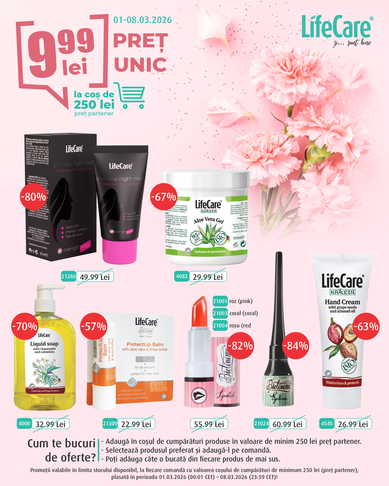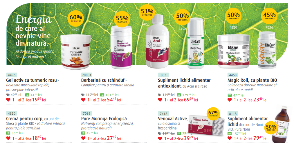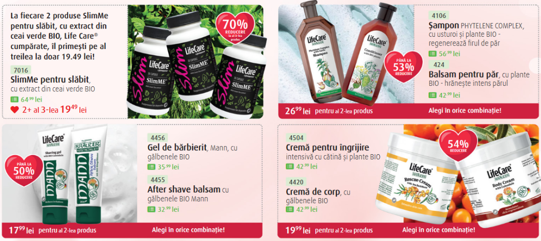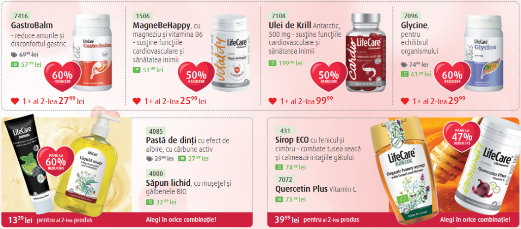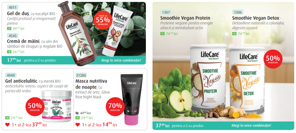 Acestea sunt ofertele curente. Pentru a vedea întreaga gamă de produse și filozofia brandului, vizitează pagina oficială Life Care.